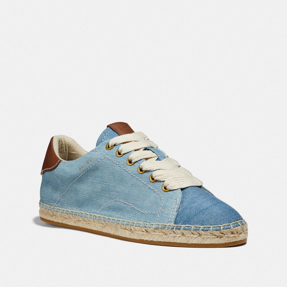 This feminine-meets-sporty style combines the silhouette of our popular C101 sneaker with the woven base of a summery espadrille. The comfortable mixed denim design looks great with everything from dresses to shorts and everything in between.