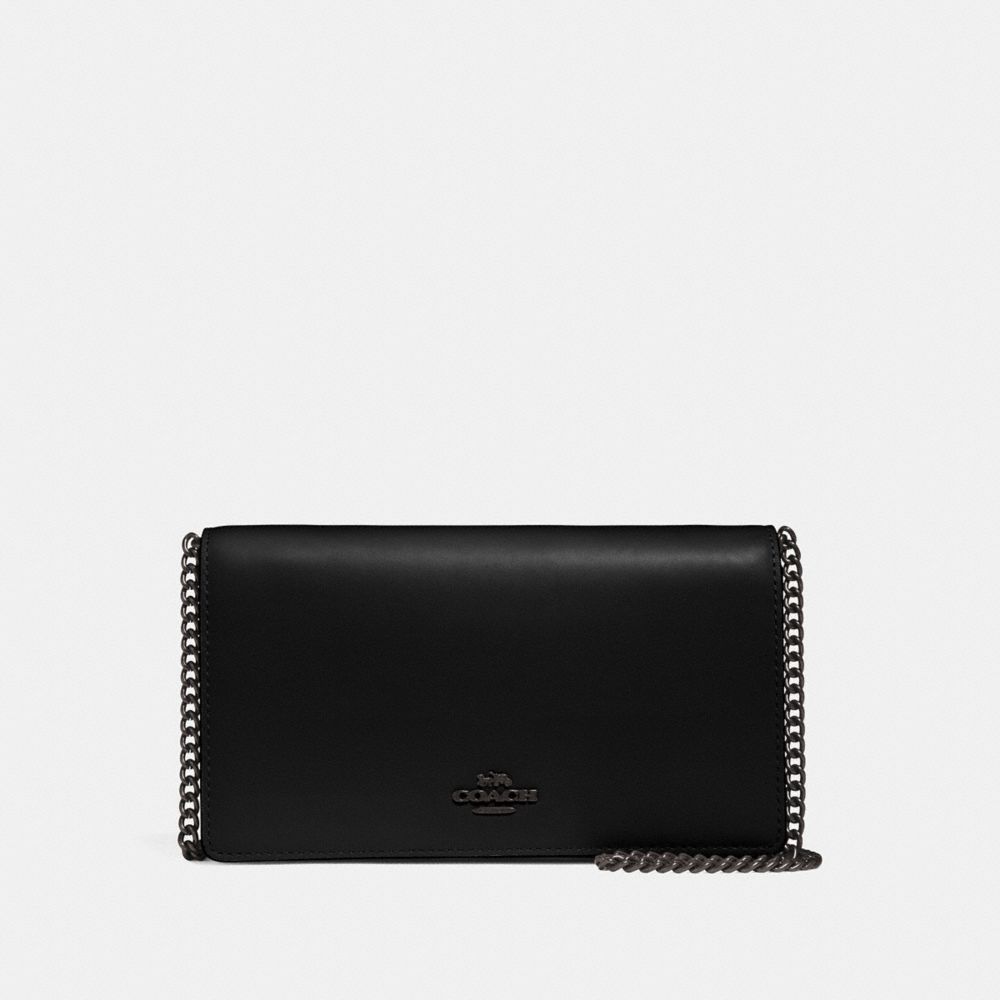 Easy, compact and practical—the perfect grab-and-go bag. Updated with an elegant chain strap, this convertible clutch is crafted in Coach glovetanned leather.