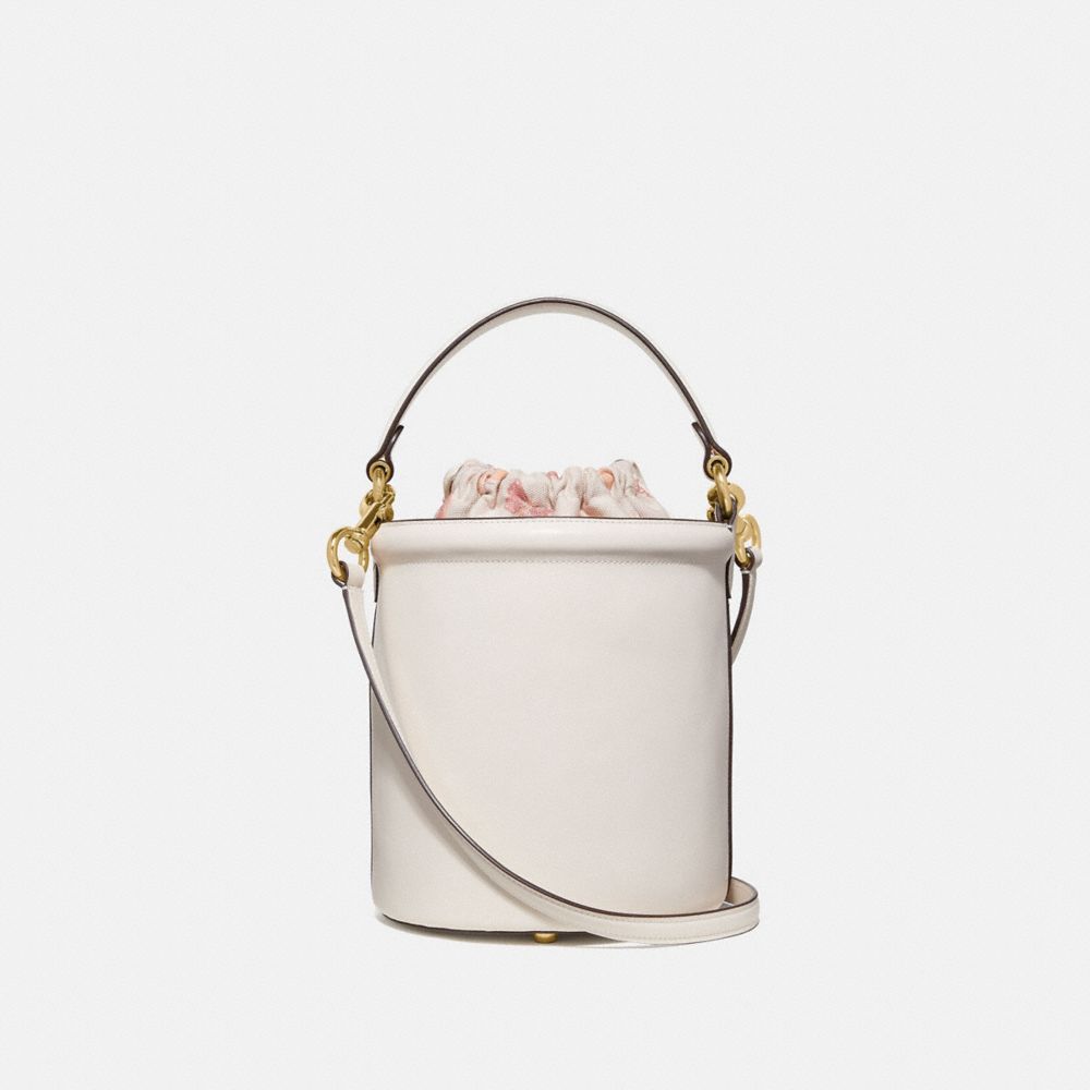 A lightweight and effortless style inspired by an archival Coach design, this refined leather bucket bag is lined with a removable fabric pouch that snaps in for safety. Pull the drawstring top tight to keep your sunglasses, phone and wallet secure. Carry it by the top handle or attach the leather crossbody strap to go hands-free.