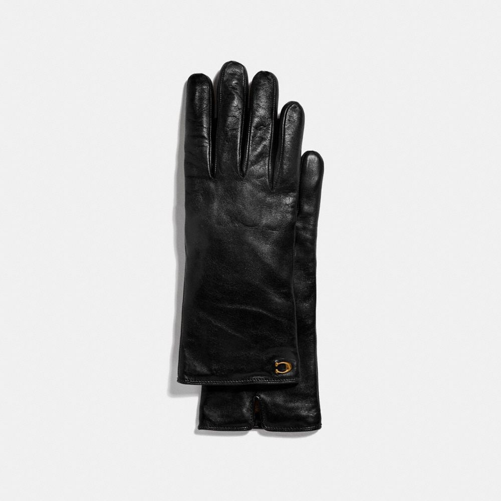 These warm, cashmere-lined gloves are crafted of smooth leather and finished with our Signature hardware. Touch sensitive technology allows you to use any standard touchscreen device without taking them off.