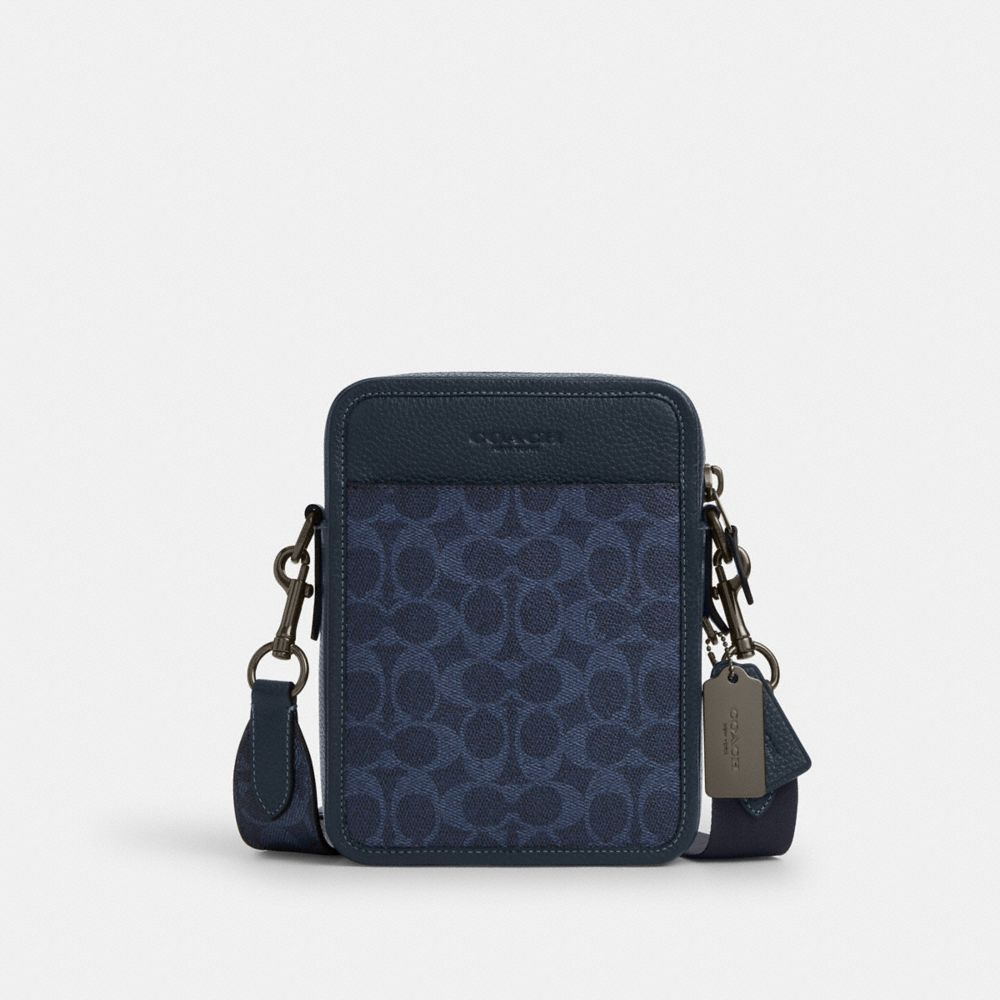 • Our Sullivan Crossbody is an easygoing silhouette for on the go, featuring thoughtful details that make it as practical as it is stylish. Crafted of Signature coated canvas and refined pebble leather, this men's mini crossbody bag has a detachable strap for shoulder or crossbody wear, and a zip closure to keep all your essentials secure. Inside multifunction pockets keep your items organized and easy to find—plus, this mini designer bag for men is lightweight and comfortable, so you can carry it all day long. No matter what you’re wearing, this everyday bag will finish off your look.